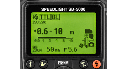 Model SB-5000 został zaprojektowany z myślą o wygodzie użytkownika – jest lżejszy od poprzednika, a jego obsługa jest bardziej intuicyjna. Różnica jest zauważalna od razu po podłączeniu lampy błyskowej SB-5000 do aparatu lub umieszczeniu jej w torbie podróżnej – to niewielkie urządzenie waży zaledwie 420 gramów. Wygodnie rozmieszczone elementy sterujące pozwoliły na zastosowanie dużego i czytelnego wyświetlacza. Obrotowy wybierak wielofunkcyjny i przycisk „i” zapewniają szybki dostęp do często używanych lub spersonalizowanych funkcji – np. naciśnięcie przycisku „i” powoduje natychmiastowe wyświetlenie listy głównych ustawień lampy błyskowej do fotografii w trybie pojedynczej lampy błyskowej lub zaawansowanego bezprzewodowego systemu oświetlenia. Głowicę lampy błyskowej SB-5000, podobnie jak głowicę poprzedniego modelu, można przechylać w dół do 7° lub w górę do 90° oraz obracać w poziomie o 180° w lewo i w prawo.