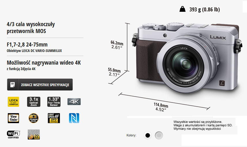 Start > Kompakty Cyfrowe > Panasonic Lumix > Panasonic Lumix DMC-LX100 Srebrny